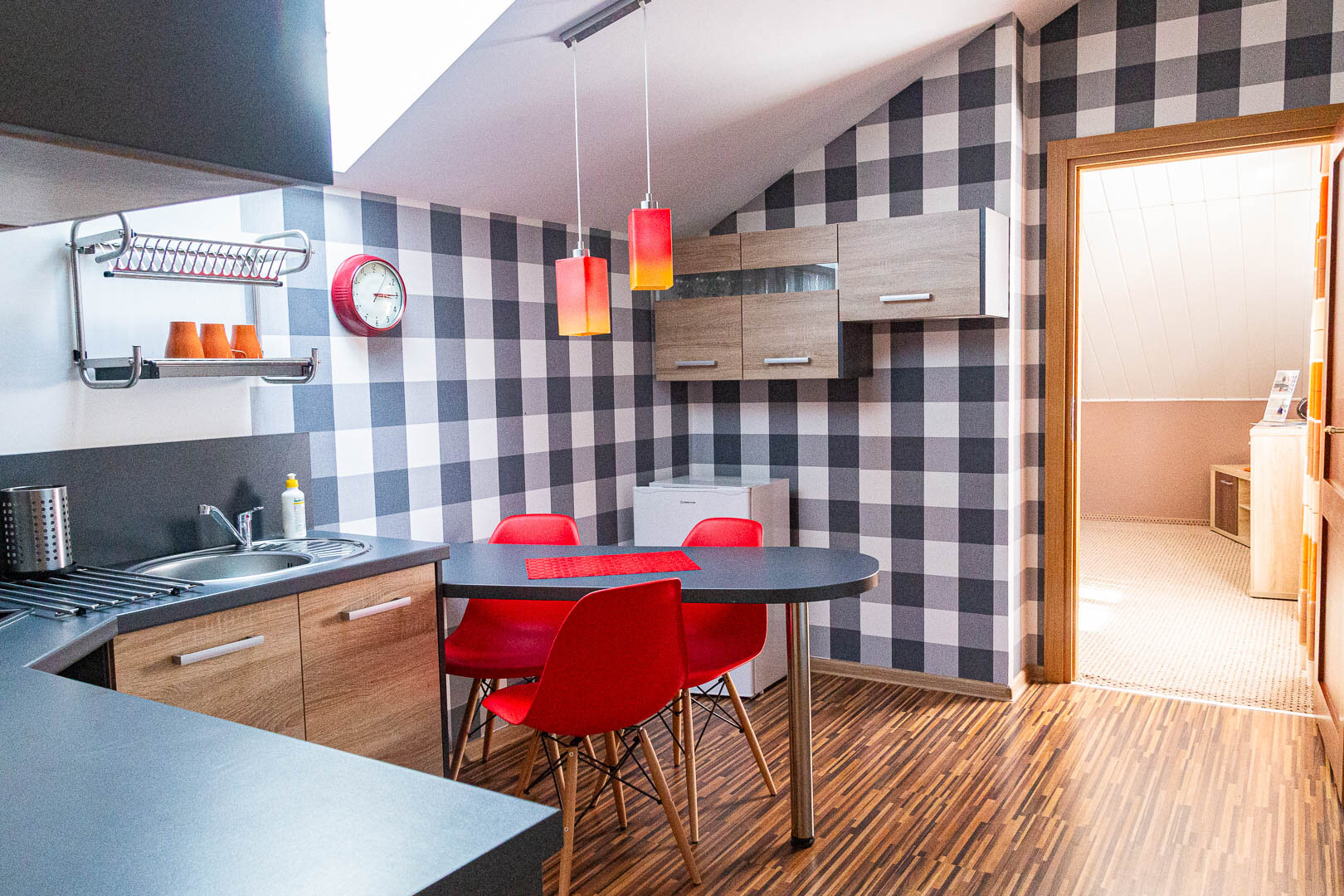 Apartament Rodzinny został zaprojektowany z myślą o potrzebach rodzin. Przestronne wnętrza, wygodne łóżka, w pełni wyposażona kuchnia oraz duża jadalnia pozwolą Wam poczuć się jak w domu. Dodatkowa sypialnia zapewnia prywatność, a przestronny salon z miejscem do wypoczynku to idealna przestrzeń do wspólnego spędzania czasu.