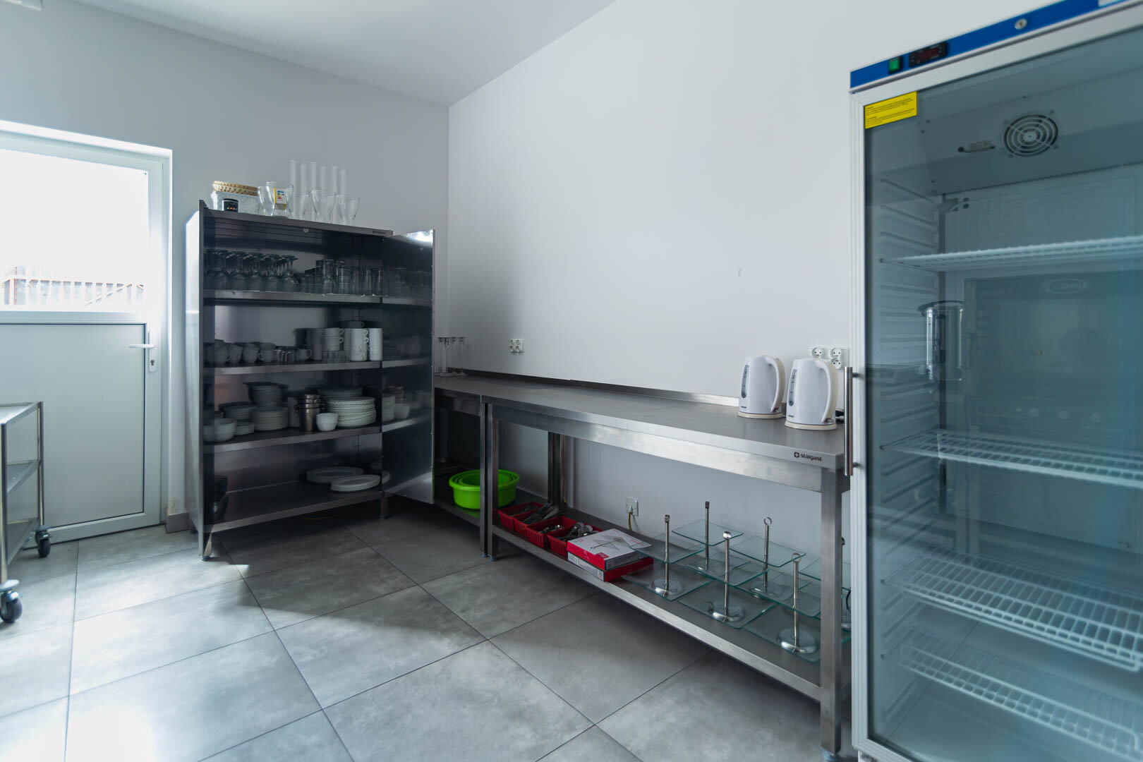 - kompleksowe zaplecze gastronomiczne w pełni wyposażone (naczynia, sztućce, obrusy itp.) i udostępnione do przygotowania żywności przez firmę cateringową,